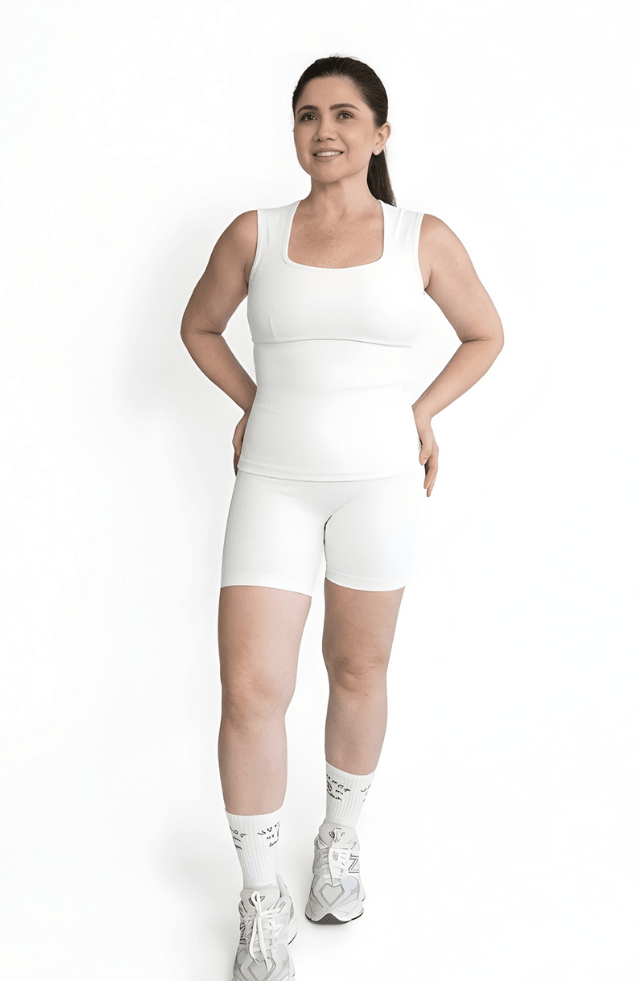 Uma regata feita para vestir o corpo real com segurança, conforto e elegância.