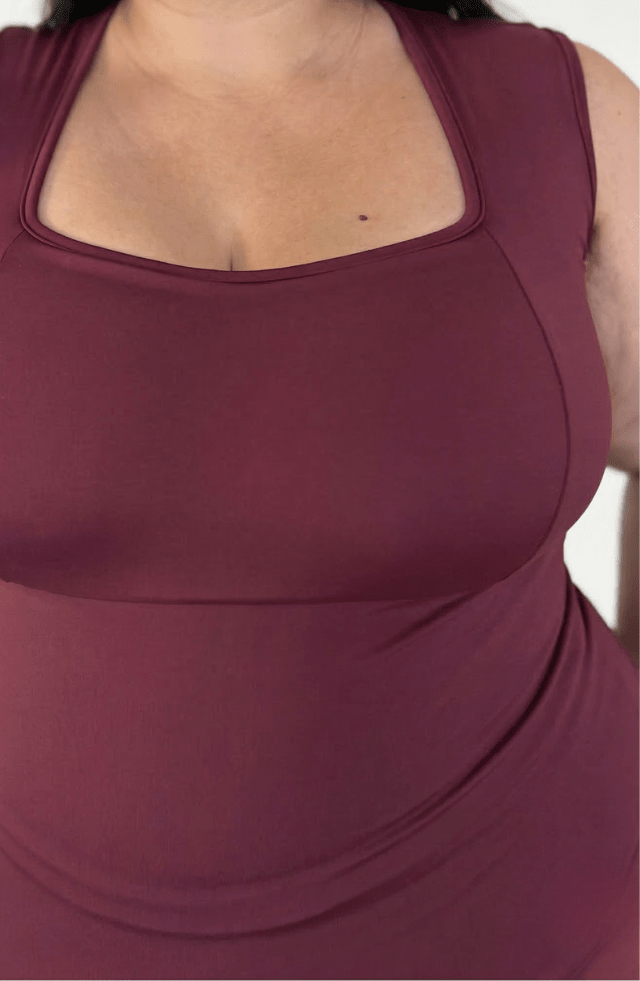 A cava foi pensada para cobrir melhor a lateral do braço, evitando que aquelas gordurinhas fiquem aparecendo. A pré-modelagem no busto dispensa o uso de sutiã, oferecendo sustentação e conforto.