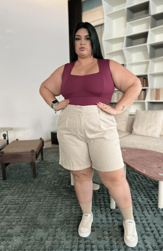 Além disso, a estrutura da peça cria um leve efeito de cinta modeladora, ajudando a segurar o abdômen sem apertar.