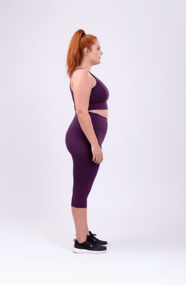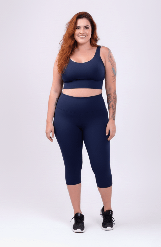 A capri tem um visual mais leve e descomplicado. Ela pode ser uma ótima opção para quem busca um estilo prático e elegante ao mesmo tempo, seja para treinos, para o dia a dia ou até mesmo para um look casual. Como ela fica logo abaixo do joelho, é mais fácil combinar com tênis, sandálias ou até botas.