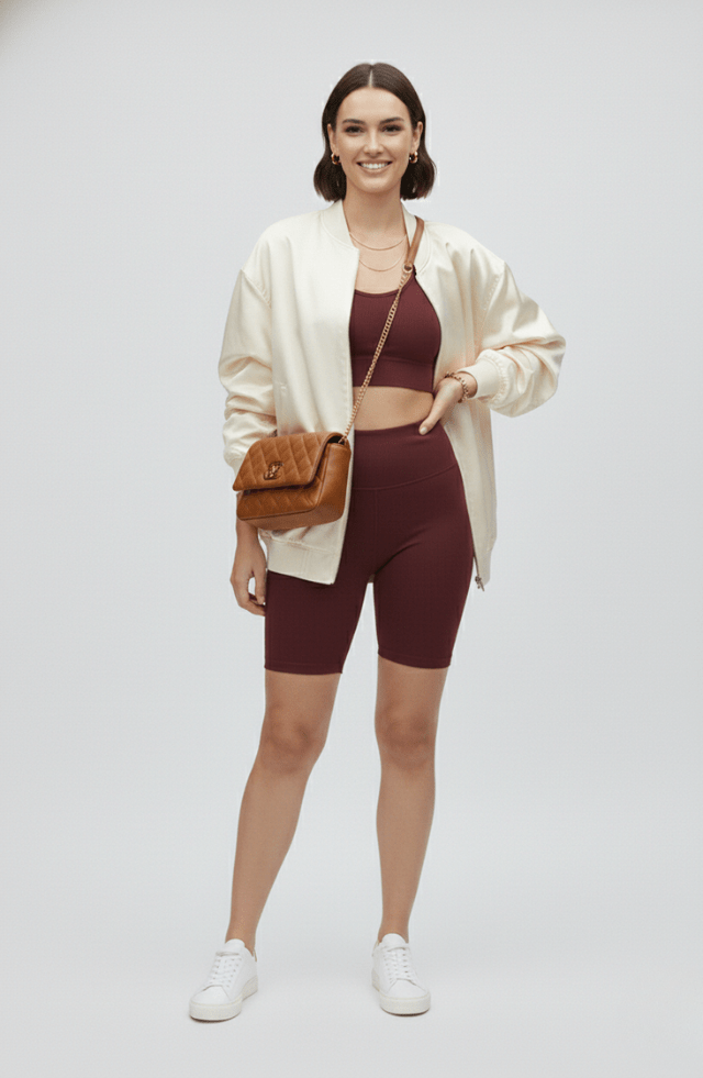 Mais curto que o modelo tradicional, na medida certa para o dia a dia. Possui bolsos discretos escondidos no cós para celular e chaves, sem interferir no visual.