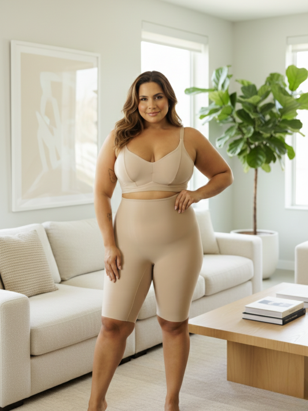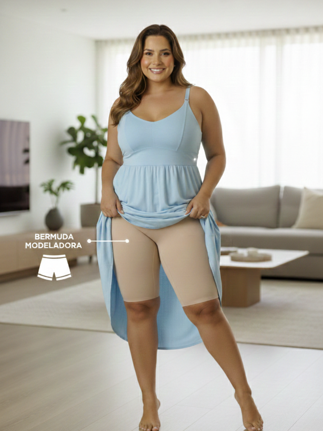 Ele evita o atrito entre as coxas, não marca por baixo da roupa clara, não enrola na cintura, e ainda deixa a silhueta mais suave — tudo isso sem apertar demais, sem machucar, e com um tecido que respira junto com você.