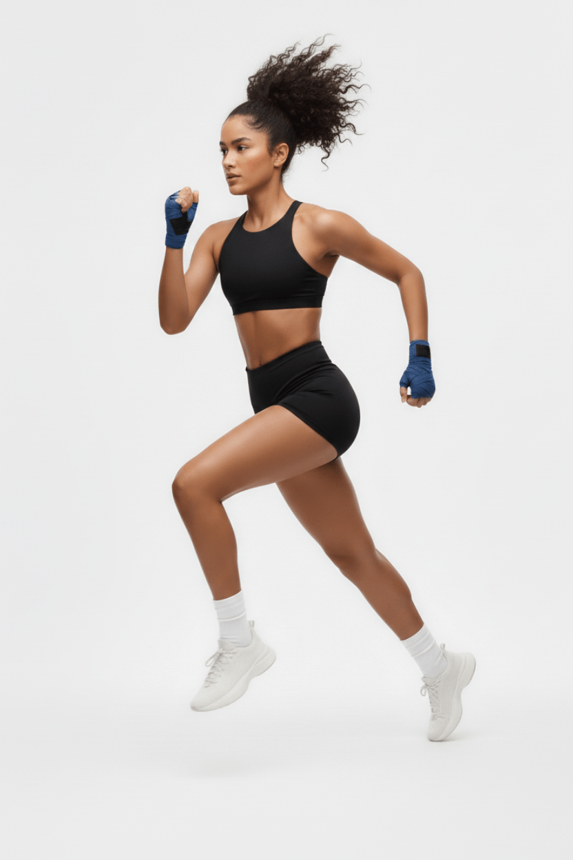 O tecido é encorpado, com compressão equilibrada, garantindo segurança, sustentação e liberdade total de movimento. Não é sobre mostrar o corpo.